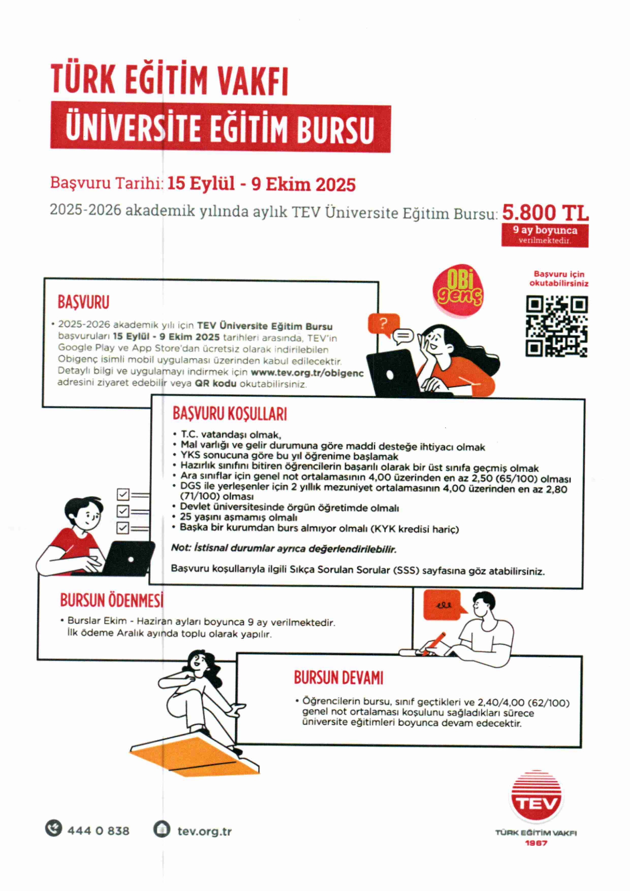 Üniversitemizde önlisans, lisans ve lisansüstü düzeyde öğrenim görmekte olan başarılı ve gelir düzeyi düşük öğrencilerimize 2025 - 2026 Öğretim yılı 03 Kasım 2025 - 19 Haziran 2026 tarihleri arasında ücretsiz bir öğün yemek bursu yardımı yapılacaktır.