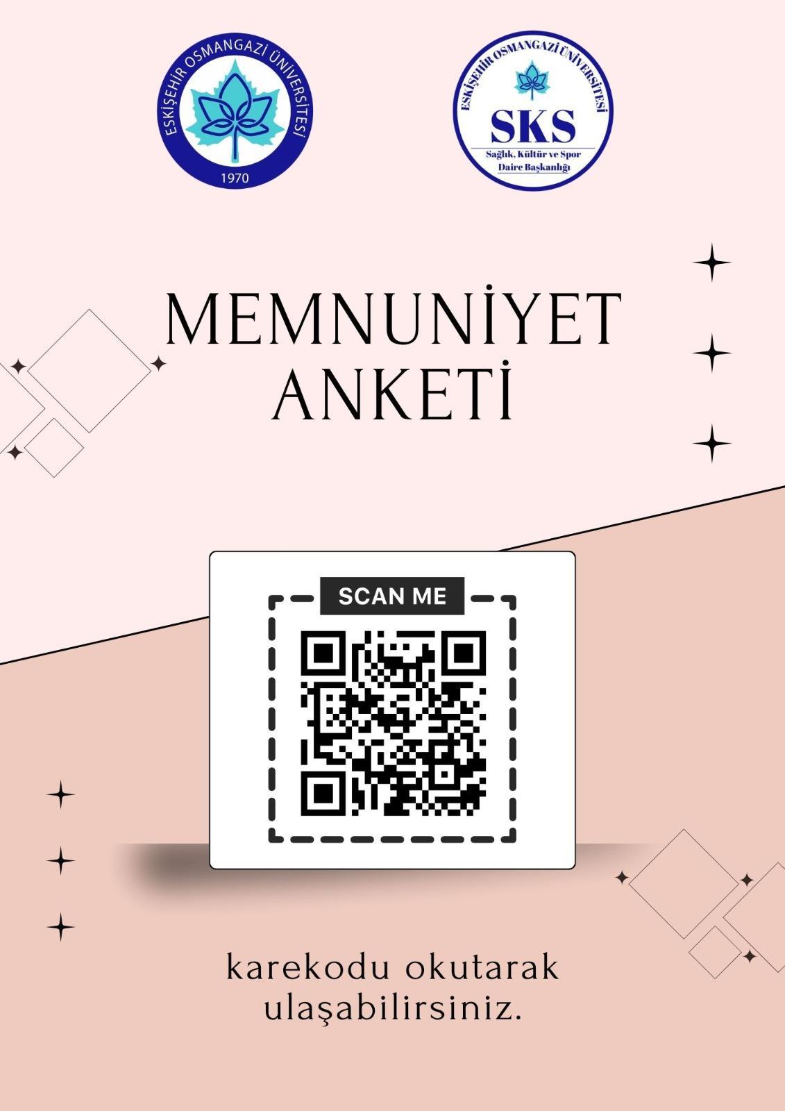Bölümümüz öğrenci ve personelinin memnuniyet anketine katılmaları önemle rica olunur. Karekodu okutarak ankete ulaşabilirsiniz.
